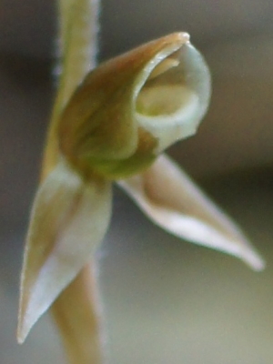・和名の由来 台湾の草山で発見され、台湾が島であることからその名がついた。日本でも南西諸島の一部に分布するので島である。 花の特徴等 花はシュスラン属としては特異な形をしている。花色は緑色を帯びた赤褐色、背萼片と側萼片は重なり唇弁を蔽い、側萼片は下方に反り返る。 唇弁は基部が嚢状となり、先端が尖って下方に反り返る。蕊柱は細く長く前方に突き出る。花がやや、上向きに咲くので餌をねだる小鳥を連想させる。 西表島で、ある花を探しながら、ハードな登山道を歩いていた時、登山道脇に1株だけ咲いていた。予期しない出会いだったのでうれしかった。 2019年にやんばるの森でも見ることが出来た。側萼片が水平に開出、形も三角状、花色も赤紫を帯び、花も上向きになっていない。西表で見たものとは感じが違うが、多分、花が終盤だったせいかもしれない。