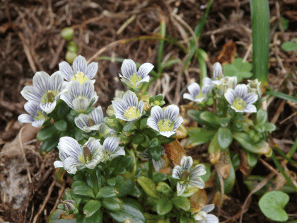 ・和名の由来 ソナレ(磯馴)とは、潮風のため木の枝や幹が地面を這うように伸びる様子を言う。本種のそのような状態とセンブリの仲間であることに由来する ・花の特徴等 伊豆半島、伊豆諸島に生える。厚みと光沢のある葉が如何にも海岸植物らしい。花冠裂片は白色で内面は紫色の筋、外面は紫褐色の斑紋があり、2個の密腺溝は黄色と色のバランスが良く見栄えがする。 晴天の日を選んで何度か伊豆半島に足を運んでいるが、花が開いているのは何時も2~3輪のみ。蕾をたくさんつけた株はあるのに残念。 |