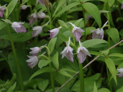 ・和名の由来 ネーミングは素敵だが、その花姿からは鴎のイメージは浮かんでこない。ネットで調べると鴨目蘭で、唇弁にある紅紫色の斑紋を鴨の胸毛にある斑紋に見立てたとあった。その方が納得できるが、漢字名としては鴎蘭の方が素敵。 ・花の特徴等 広楕円形の葉が1枚つき、その付け根から花茎を伸ばし2~3個の淡桃色の花をつけ、その基部には葉状で緑色の苞がある。萼片と側花弁は集まって兜状になり、唇弁には一面に紅紫色の斑紋があり、浅く3裂するが目立たない。距は線形。条件が良ければ栄養繁殖するので群落を作ることがある。 亜高山帯に生えるので、登山中に思いがけず出会うことがある。鳳凰三山をを縦走し青木鉱泉に下る尾根道に小さな群落があった。これがカモメランとの最初の出会いで感激したのを覚えている。 ![]() |