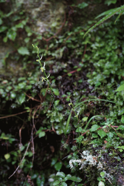 ・和名の由来 その名の通り葉が長いトンボソウに由来する。 ・花の特徴等 山地の湿った岩上や苔の中に生える。ホソバノキソチドリの亜種で花はこれによく似ているが、一番下の葉が線形で非常の長いこと、花が数個しかつかないこと、距が上方に跳ね上がること等で区別できる。左の画像は草丈より葉の方が長い。 今回が3度目のチャレンジだったが、自生場所を知っている地元の方に案内してもらったので簡単に見ることが出来た。それも車道脇だったので拍子抜けがした。 これで環境省絶滅危惧Ⅱ類のランは60種全てを見たことになる。 ![]() |