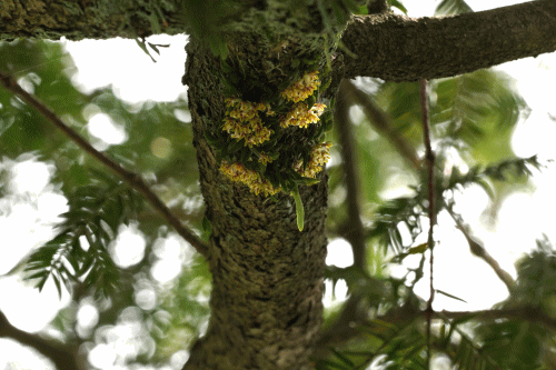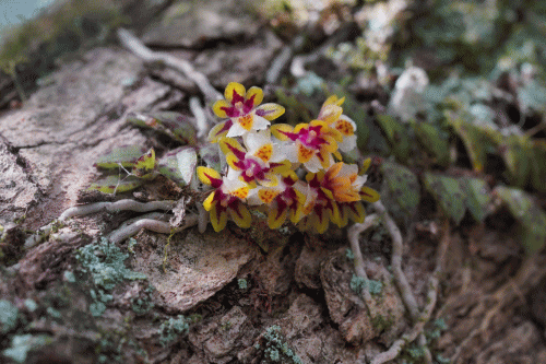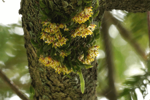 | モミラン復活(観察日 3月31日) 11年前、天然記念物になっている岐阜県のモミラン(ラン科マツラン属 VU)自生地を訪れた時は、榧の大木の幹や枝にびっしりと密集して着生、花をつけているモミランに圧倒されたものだが、その後、消滅したと聞いていた。 ところが、花友から今、モミランが咲いているとの連絡があったので、高速道路を延々と走り、往復600kmのドライブで自生地を訪れた。 花友の情報を基に探すと、モミランは手を伸ばせば届くような枝に1株、幹にも1株が着生、花をつけていた。さらに双眼鏡で探すと2か所見つかった。 かっての大群落からすると寂しいが、接写できたので花の構造がよく分り良かった。花友に感謝。 ・枝に着生していたモミラン ![]() ・幹に着生 ![]() ・花をズーム。唇弁は白色、中央に淡黄緑色と紅紫色の斑紋と毛があること、距が太いことが分かった。 ![]() ・双眼鏡で確認、400mm望遠レンズで撮影 ![]() ・カメラのズーム機能を使って撮影 ![]() |