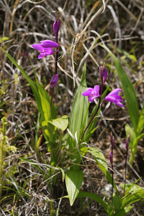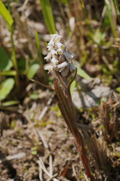 | 薩摩半島へ(観察日 4月10日) 鹿児島の離島に4種のランを探しに行くことにしたが、船の出発時刻は9時半のみ。この時刻では朝一番の羽田発飛行機に乗っても乗船は難しいので、鹿児島の花友さんからの情報を得て、薩摩半島でオキナワチドリ、キヌラン、サツマアオイを観察した。 ・オキナワチドリ(ラン科ヒナラン属VU)-南さつま市のある公園内道路法面に群落していた。絶滅危惧種であるのがおかしい位よく見かけるが、可愛い花である。 ![]() ・キヌラン(ラン科キヌラン属)-オキナワチドリと混生していることが多いが、ここでもそうであった。唇弁の先が尖る品種のチクシキヌランは、沖縄本島や奄美大島等に多いが、ここでは全てがキヌランであった。 ![]() ・シラン(ラン科シラン属NT)-植栽の可能性大。そうでなければ南限なのだが。 ![]() ・サツマアオイ(ウマノスズクサカ科カンアオイ属CR)-薩摩半島で一番見たかったのはランではなくサツマアオイ。ある美術館の照葉樹林で観察、顎裂片が波曲する個性的なカンアオイ。 ![]() ![]() |