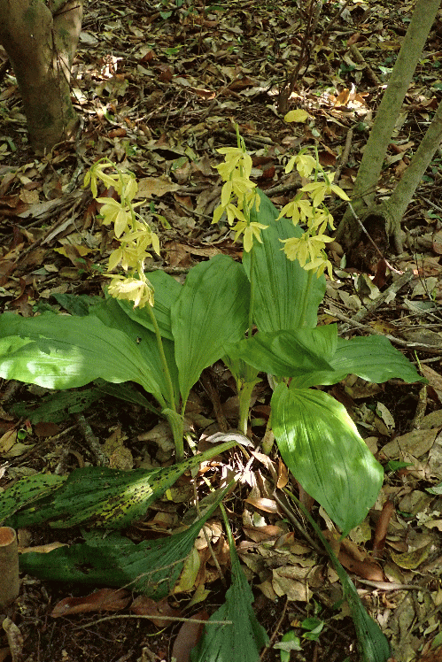 | サクラジマエビネ開花(観察日 5月10~11日) よく利用している地元のガイドが2021年秋に超希少種のサクラジマエビネ3株を発見、大きな株だったので翌年咲くのではと期待したが、花茎が立たなかった。 今年も4月16日時点では、花茎がなく、今年もダメかと諦めていたが、4月28日に花茎が立っていることをガイドが確認、5月5日には花が咲き始めているとの連絡があった。 是非見たかったランなので、9日の宮崎からの東京便をキャンセル、翌10日に10時間かけて現地に移動、11日にガイドに案内してもらう日程に変更した。 花仲間を誘うと4人が同行することになった。 11日は快晴、ガイドに迎えに来てもらい、林道に車を止め、自生地に向かう。踏み跡に入るとエビネ、キエビネ、キリシマエビネ、タカネの群落があるが、残念ながら花は終わっている。1か所だけキエビネの花が残っていたが、花が下を向き、唇弁が見えない終盤の花ばかりだった。 約1時間、登りと下りを繰り返して自生地に到着。サクラジマエビネは花茎が3本立ち、花も見頃だった。ただ、草丈の割には花が小さく、全体像を撮ると萼片と側花弁が緑色、唇弁が黄色なことしか分からない。 そこで花を接写、側花弁が線状披針形であること、唇弁が3裂し、側裂片は小さく中裂片は方円形、3列の隆起条があること、距が短いこと等が分かった。 初見のCRのランは一昨年のコカゲラン、ヤクシマトンボ以来だったので大満足、案内役のガイドに感謝!。 ・サクラジマエビネ(ラン科エビネ属 CR) ![]() ![]() ・キエビネ(ラン科エビネ属 EN) ![]() まだ時間の余裕があったので、ガイドにお願いしてキバナヒメトケンランの自生地に案内してもらう。初めは平坦な道だったが、途中から足場の悪い急な登りと下りに変わり、スリップしないよう細心の注意を払って1時間20分くらいで自生地に到着。 そこにはヒメトケンランに混じって2か所にキバナヒメトケンランが生えいていた。萼片、側花弁、唇弁とも鮮やかな黄色で見栄えがする。足場が悪く、撮影は大変だった。 近くにはキリシマエビネが1株あったが、花は終盤だった。 ・キバナヒメトケンラン(ラン科ヒメトケンラン属)-ヒメトケンランの色変わりで品種と思うが、ネットでは検索できず、学名もないようである。 ![]() ・ヒメトケンラン(ラン科ヒメトケンラン属 VU)-近くに大株もあったが、足場が悪いので行かず、貧弱な株の撮影で我慢した。 ![]() ・キリシマエビネ(ラン科エビネ属 EN) ![]() |