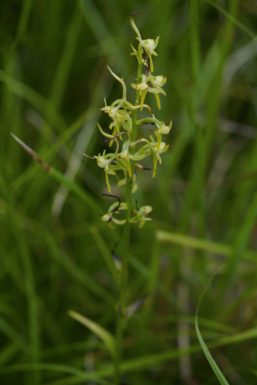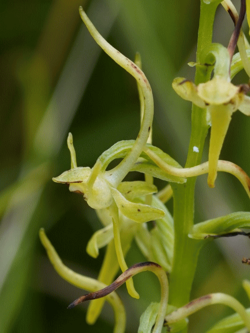 | 高知でロングドライブ(観察日 6月29~30日) 今回の飛行機便はJALバーゲンで往復2万円以下、旅館は旅行支援利用のエコ旅、レンタカーも軽自動車を利用した。 高知龍馬空港到着後、レンタカーを借り、9時半前に出発、東に向かい約2時間強で目的地に到着。 目的の花はヤクシマネッタイラン(ラン科ネッタイラン属EN)。昨年、同地を訪れた時、結実はしていなかったが、花茎の残る株を3株ばかり見つけたので、少し早過ぎるとは思ったが、再訪。 ところが、花茎の立っているヤクシマネッタイランは、1時間ばかり探したが見つからず諦める。1週間後に花仲間が訪れ、咲いている株を見つけているだけに残念だが、視力が悪く、花探しは苦手なので、予想通りの結果とも言える。 次は高知竜馬空港を通り越し、今度は、3時間近くかけて高知市内の公園へ。目的の花はササバラン(ラン科クモキリソウ属VU)とマイサギソウ(ラン科ツレサギソウ属)。 何時もは株数が1~2株で、探さないと見つけるのが難しいササバランが、今年は、10株以上生えていて、探すまでもなく簡単に見つかった。ずんぐりとした花姿が気に入っている。 マイサギソウはササバランから少し離れた場所で見つかったが、花が終盤だったのが残念。ヤマサギソウの変種で、それより距が長く、跳ね上がるのが特徴。背萼片と側花弁が同じ高さになるのも特徴のようだが、全てが背萼片は水平、側花弁は直立していた。この特徴は例外もあるようなので、マイサギソウと同定しても間違いないと思っている。 ・ササバラン ![]() ![]() ・マイサギソウ ![]() ![]() 何時もは、ビジネスホテルか民宿を利用しているが、今回は全国旅行支援を利用したので、いの市の温泉旅館へ。部屋は広々していて、温泉、食事も良く、寛げた。 翌日は、高知県と愛媛県の県境のある高原へ。雨が降ったり止んだりの天気の中、3時間以上のドライブで目的地に到着。 目的の花は、アキタスズムシソウ(ラン科クモキリソウ属)。駐車場の側で見るつもりだったが、改装工事のため消失、楽ちんで見れる予定だったのに残念。他に知っている自生地は山、雨でぬかるんだ道を1時間ばかり登り、花に対面した。 撮影している時は雨が止みラッキーだったが、ブヨの大群に襲われ、早々に切り上げ下山。 この後、横倉山にも登る予定だったが、雨が本降りに変わったので諦め、レストランで昼食をとったり、温泉に入浴したりしながら空港に向かった。 ・アキタスズムシソウ-2019年に新種となる。それまではセイタカスズムシソウと混同されてきた。花が小さく、比較的、花が密につく。唇弁の縁が反曲し、上から見ると方円形に見えるものが多い。 |