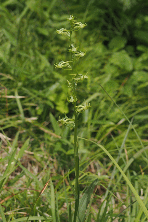 | ヤマサギソウ(観察日5月14日) 花仲間からヤマサギソウが咲いていると教えてもらい、町田市の谷戸へ。以前、1度だけ行ったことのある場所だったが、入口に標識がないので、散々迷って、ようやく自生地に到着。 ヤマサギソウは6株あり、見頃だった。自生場所は水田脇にある小高い場所の日当たりの良い法面で、かって、愛知県で見た場所と全く同じ環境だった。 3月に公表された環境省レッドリストにヤマサギソウが絶滅危惧Ⅱ類(VU)としてリストされた。島嶼部を除く東京都の数少ない絶滅危惧種なので、この環境が長く保たれ、盗掘の被害にも遭わないことを願っている。 ・ヤマサギソウ(ツレサギソウ属VU) ![]() ![]() ![]() |