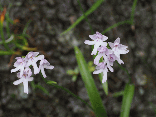 | 今年もコアニチドリ(観察日 6月10日) 東京から関越トンネルを抜け、新潟県に入り、コアニチドリ(ラン科イワチドリ属VU)の自生地へ。所要時間は3時間と遠いが、コアニチドリ絶好の観察地と思っているので、毎年のように訪れている。 今年は目線に、1茎5花の株が二つ並んで咲いていた。それに白花もあった。最も、唇弁に2列の赤紫色の筋は残っているので、白花とは言えないのかもしれない。 ・コアニチドリ(イワチドリ属VU) ![]() 1茎5花の株をズームアップして撮影 ![]() 白花? ![]() 続いて群馬県に戻り、サルメンエビネ(ラン科エビネ属VU)の自生地へ。去年、五本立だった株は、3株に減り、鹿に食べられたのか、うち2本は葉が無くなっていた。残りの1株は蕾、多雪の影響か花期が遅れてる。 諦めて戻る途中、標高の下がった場所で、開花している2株を発見。無駄足にならずに済んだが、急傾斜で写真撮影には不向き。 ・サルメンエビネ(エビネ属VU) ![]() |