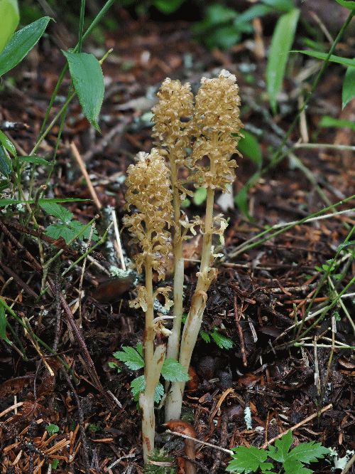| 諏訪地域でラン探し(観察日6月24日) 花仲間3人と諏訪地域へ。雨の予報で訪問日を1日ずらしたが、当日も雨、でもラッキーなことに目的地に近づく頃には、雨が上がり、その後、降られることはなかった。 まず、エゾサカネラン(ラン科サカネラン属)の自生地へ。見ることが難しい希少なランなのに、環境省・絶滅危惧種にリストされていないのを不思議に思っていたが、今年3月公表の環境省レッドリストに絶滅危惧ⅠA類(CR)としてリストされていて納得。 変種のサカネラン(サカネラン属VU)に似ているが、花色や草丈を見るだけで、同定ポイントである毛の有無を確かめるまでもなく、判別できる。 1か所に、2本立ち、3本立ち、1本立が2株、合計7株もあった。 ・エゾサカネラン(サカネラン属CR) ![]() ![]() 近くには、カモメランが咲いていたが、最近は少なくなり、2株しかなかった。 ・カモメラン(カモメラン属NT) ![]() 帰る途中、ジガバチソウを発見!1株しかなかったが、緑花だった。ここには、何回も来ているが、ジガバチソウを見るのは初めて。 ・ジガバチソウ(クモキリソウ属) ![]() 次に、ここから車で10分位の場所で、オニノヤガラ(ラン科オニノヤガラ属)を探す。オニノヤガラは見当たらなかったが、その白花が1株だけ咲いていた。 この付近にはシロテンマも生えるが、花柄子房や花茎も白色、花付きも良いので、オニノヤガラで間違いないと思う。オニノヤガラに白花があるとは知らなかったし、見るのも初めて。 ・オニノヤガラ白花品(オニノヤガラ属) 最後に、ビーナスライン沿いの道脇で、コケイランを観察。花友の言によれば、かっては群落があったそうであるが、今回は1本だけしかなかった。辺りの環境が変わっているので、復活は期待できそうもない。 ・コケイラン(コケイラン属) |