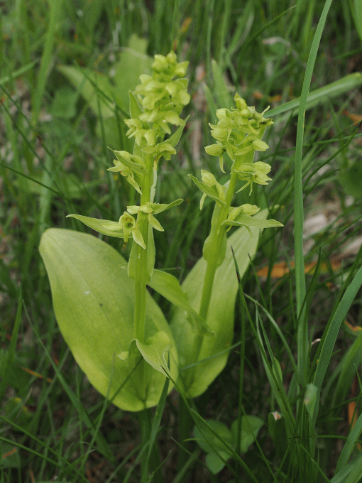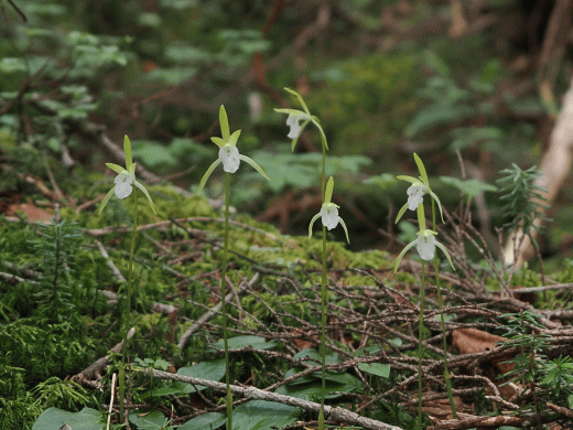 | 初見のラン・タカネイチヨウラン(観察日 6月30日) 標高2千mを超える場所まで車で行け、駐車場から少し登った所に、タカネイチヨウラン(ラン科イチヨウラン属)があると、花友から教えてもらった。私にとって初見のランが、労せずして、それも涼しい場所で見れ、申し分のない花観察だった。花友に感謝。 タカネイチヨウランは直ぐに見つかった。一見しただけでイチヨウランとは違うことが分かる。うれしいことに、3,5,6連の株があったが、花が風に揺れて、ピントが合っていないのが残念。 タカネイチヨウランは、以前から知られていたようであるが、昨年の7月に新種として発表された。萼片、側花弁に赤紫色の斑点がないこと、唇弁に赤紫色の斑点が少ないことや、その形等がイチヨウランとの相違点。 ・タカネイチヨウラン(イチヨウラン属) ![]() ![]() 左がタカネイチヨウラン、右がイチヨウラン。並べてみると違いは明白。 ![]() ![]() 帰る途中、スキー場を横切る道路脇でもランを見ることが出来た。 ・ノビネチドリ(ノビネチドリ属)-色の淡いタイプもあった。 ![]() ![]() ・ミヤマチドリ(ツレサギソウ属)-距が三角状、花茎が四角っぽいので、ミヤマチドリと同定した。 ![]() 距と花茎をトリミング。 ![]() |