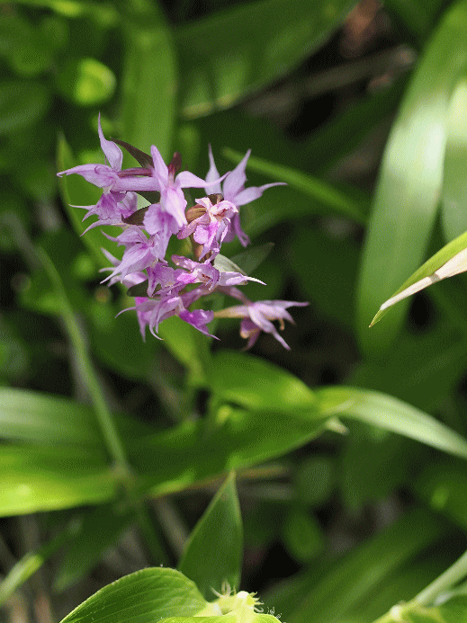 | 池の平湿原(観察日 7月13日) 1泊2日で長野県の池の平湿原と新潟県妙高市の湿原へ。初日の目的地は池の平湿原。高尾駅で同行者の車に3人が便乗して、9時頃、湿原駐車場に到着。所要時間は3時間と遠いが、ここの標高は2,060m、東京の暑さが、嘘のように涼しい。 歩いたのは、湿原入口から湿原を通り抜け、幾つかのピークを登り、湿原入口に戻るコース。展望が良く、花が多いので人気のコースだが、この時期、ランが多いので気に入っている。 今回も観察出来たランは、テガタチドリ、ホソバノキソチドリ、タカネサギソウ、ジガバチソウ、ハクサンチドリ、ヤマサギソウ、ミヤマフタバラン、シテンクモキリソウ、エゾスズラン(蕾)の9種類だった。絶滅危惧種はヤマサギソウだけだったが、一度にこんなに多くのランを観察できる所は少ない。 ・テガタチドリ(テガタチドリ属)-歩き始めたところにあった2株しかなかった。以前は群落があったのに、見当たらなかった。 ![]() ・ホソバノキソチドリ(ツレサギソウ属)-側花弁は開出せず、背萼片と共に兜状になること、距が下垂するか、下方に湾曲するのが特徴。 ![]() ・タカネサギソウ(ツレサギソウ属)-草丈が低い、苞が花より長い、距が下方に曲がる等が特徴。下の画像は草丈に比べ、葉が大きい。これも特徴と思う。 ![]() ・ジガバチソウ(クモキリソウ属)-池の平で見たのは初めて。 ![]() ・ハクサンチドリ(ハクサンチドリ属)-終盤だが、何とか咲き残っていた。 ![]() ・ヤマサギソウ(ツレサギソウ属VU)-一見してヤマサギソウと思ったが、水平に伸びる距がヤマサギソウにしては長すぎるような気もする。もしかして、ハシナガヤマサギソウ? ![]() 水平に伸びる距が長い。 ![]() ・ミヤマフタバラン(サカネラン属)-落ち葉等と同化して目立たないが、花探しの名人がいたので、次々と見つけてくれた。咲き始めで、蕾の方が多かった。 ![]() ・シテンクモキリソウ(クモキリソウ属)-花は終盤だった。例年であれば、まだ見頃の筈だが、今年は花が早い。 ![]() この後、同行者2人を軽井沢駅まで送り、残り2人は明日の観察に備えて、長野市内のホテルに宿泊した。 |