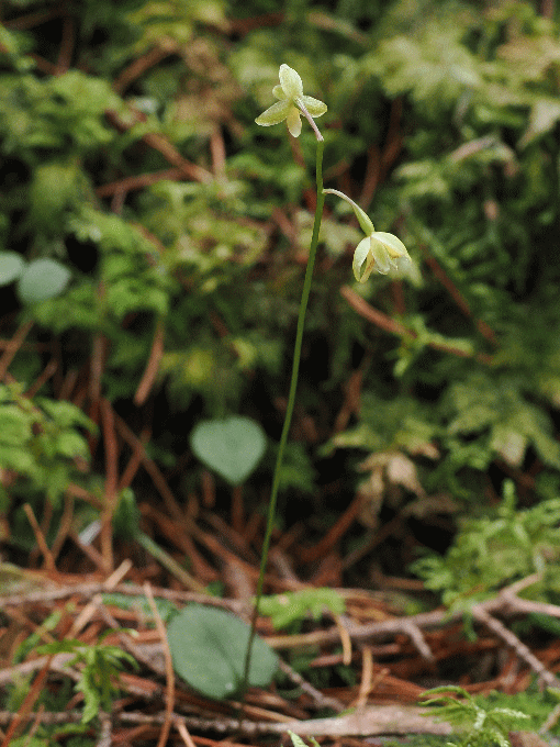 | 富士山中腹のラン(観察日 7月24日) 富士山中腹の山梨県側1,200m~1,800mの場所4か所でランを探し、オオバナノオオヤマサギソウ、セイタカスズムシソウ、ホザキイチヨウラン、アリドオシラン、キソチドリ、コイチヨウラン6種のランを見ることが出来た。 ・オオバナノオオヤマサギソウ(ツレサギソウ属CR)-オオヤマサギソウに似て花が大きいと言う名前の由来通りの種だが、距が長いのも目を惹く。 ![]() ・セタカスズムシソウ(クモキリソウ属)-花は終盤だったが、大きな塊になって、咲いていた。子株も沢山あった。 ![]() ・ホザキイチヨウラン(ヤチラン属?)-花は終盤、辛うじて花序の上部だけに花が残っていた。環境省レッドリストを見ると、属名(英語)がヤチランと異なるので、変更すべきと思うが。 ![]() ・コイチヨウラン(コイチヨウラン属)-花が下向きに付くので、唇弁が良く見えない。 ![]() ・アリドオシラン(アリドオシラン属)-この場所付近には、固まって咲いている場所があるのに辿り着けなかった。見たのは点在している株だけ。 ![]() ・キソチドリ(ツレサギソウ属)-花が黄緑色のツレサギソウ属の種は、同定に迷うことが多い。画像の株は針葉樹林帯であったこと、側花弁が万歳していること、葉がほぼ、水平についていること等を考慮した。花が密に付かないことも多い。 ![]() まだ、時間の余裕があったので、富士山中腹から八ヶ岳山腹に場を移して、シロテンマを観察した。これで今日観察したランは7種類になった。 ・シロテンマ(オニノヤガラ属EN)-花は終盤だった。この株は、昨年のガラと並んで生えていた。 ![]() |